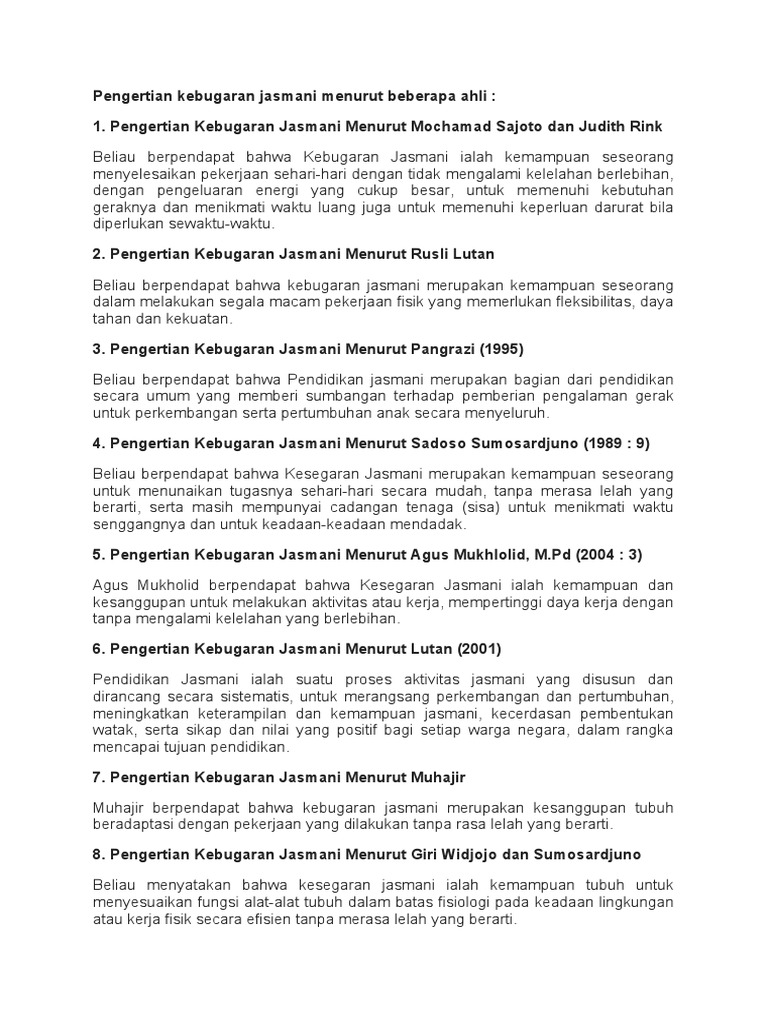 Pengertian Kebugaran Jasmani Menurut Beberapa Ahli Pdf